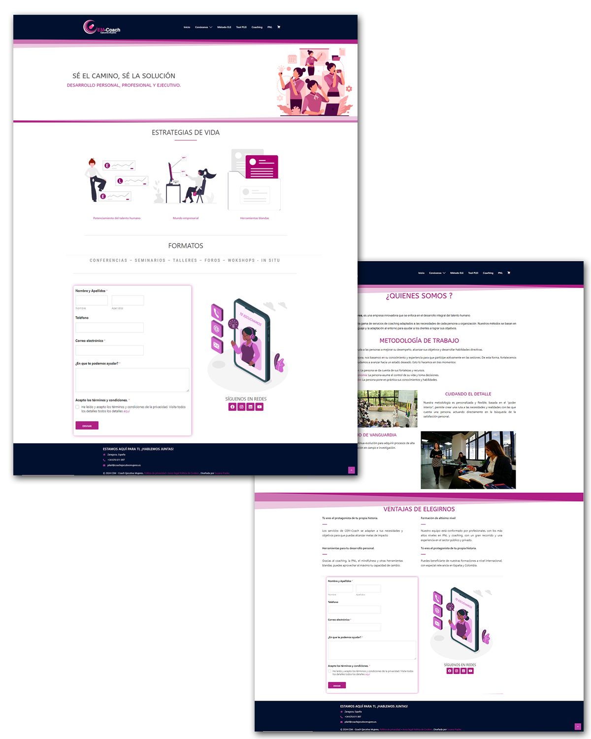 Página web de Coach Ejecutivo Mujeres, una empresaria me contacto, para relanzar su negocio y crear su sitio web sobre mujeres emprendedoras, charlas y cursos para la mejora del potencial de la mujer.